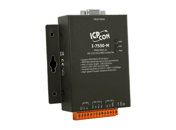 ICP Electronics Australia is proud to introduce ICP DAS I-7550-M. The I-7550-M by ICP DAS is an advanced PROFIBUS to RS-232/422/485 converter, meticulously engineered to facilitate the integration of RS-232/422/485 devices into a PROFIBUS DP protocol network. As a DP-V0 Slave, it boasts an automatic transmission rate detection feature, simplifying setup and ensuring optimal communication speeds. It supports a maximum input and output data length of 128 Bytes, allowing for efficient data exchange.